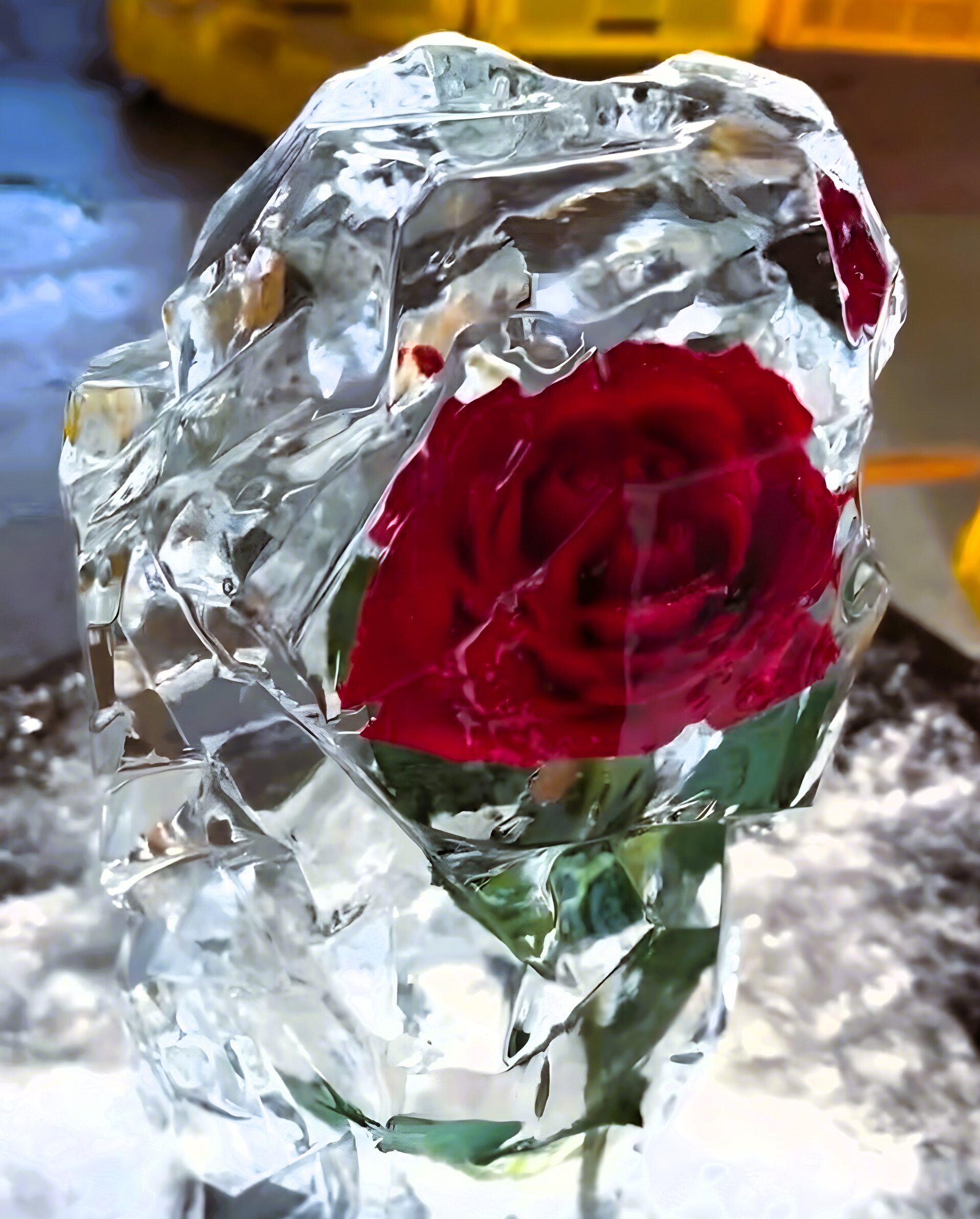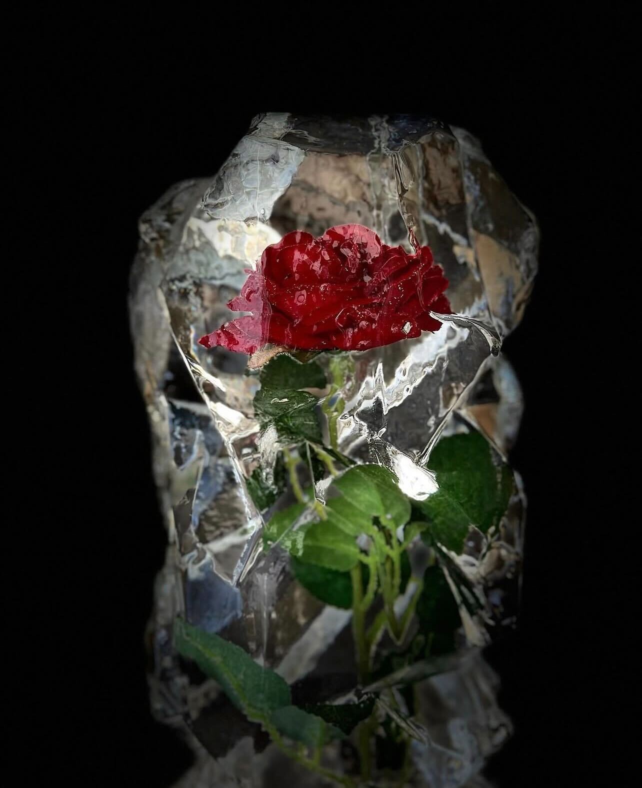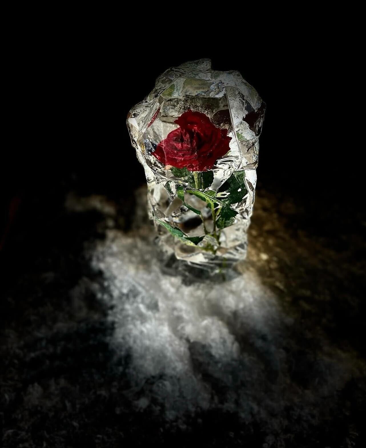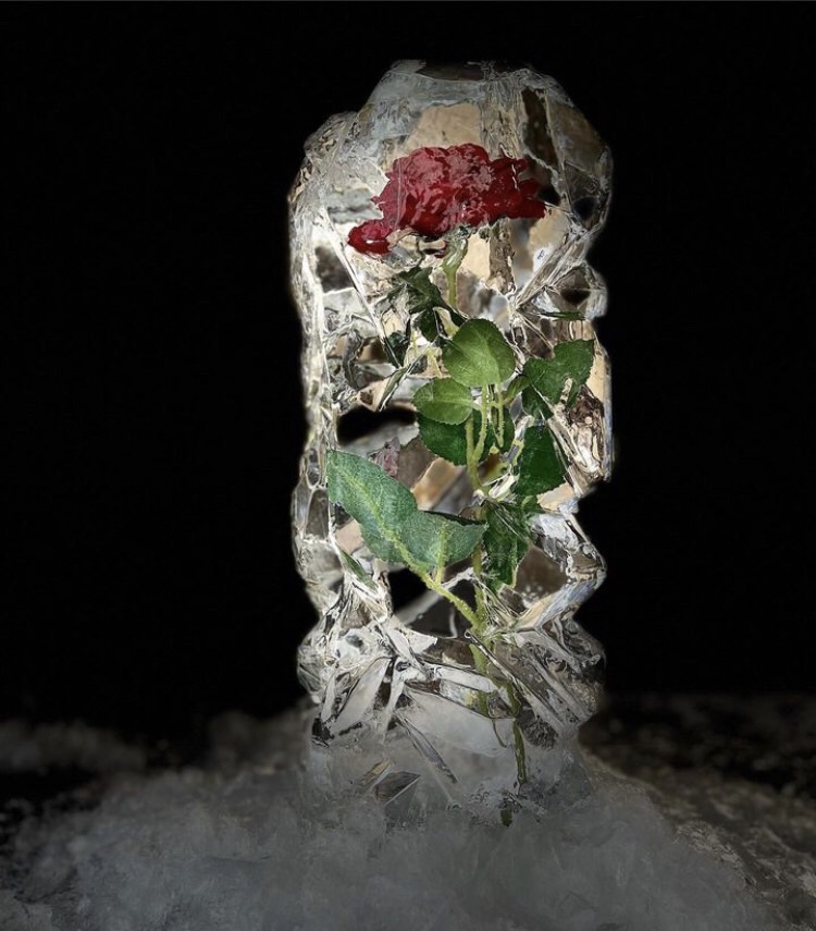 バラの花を全体に散りばめた、フォトジェニックな椅子型の氷華。
