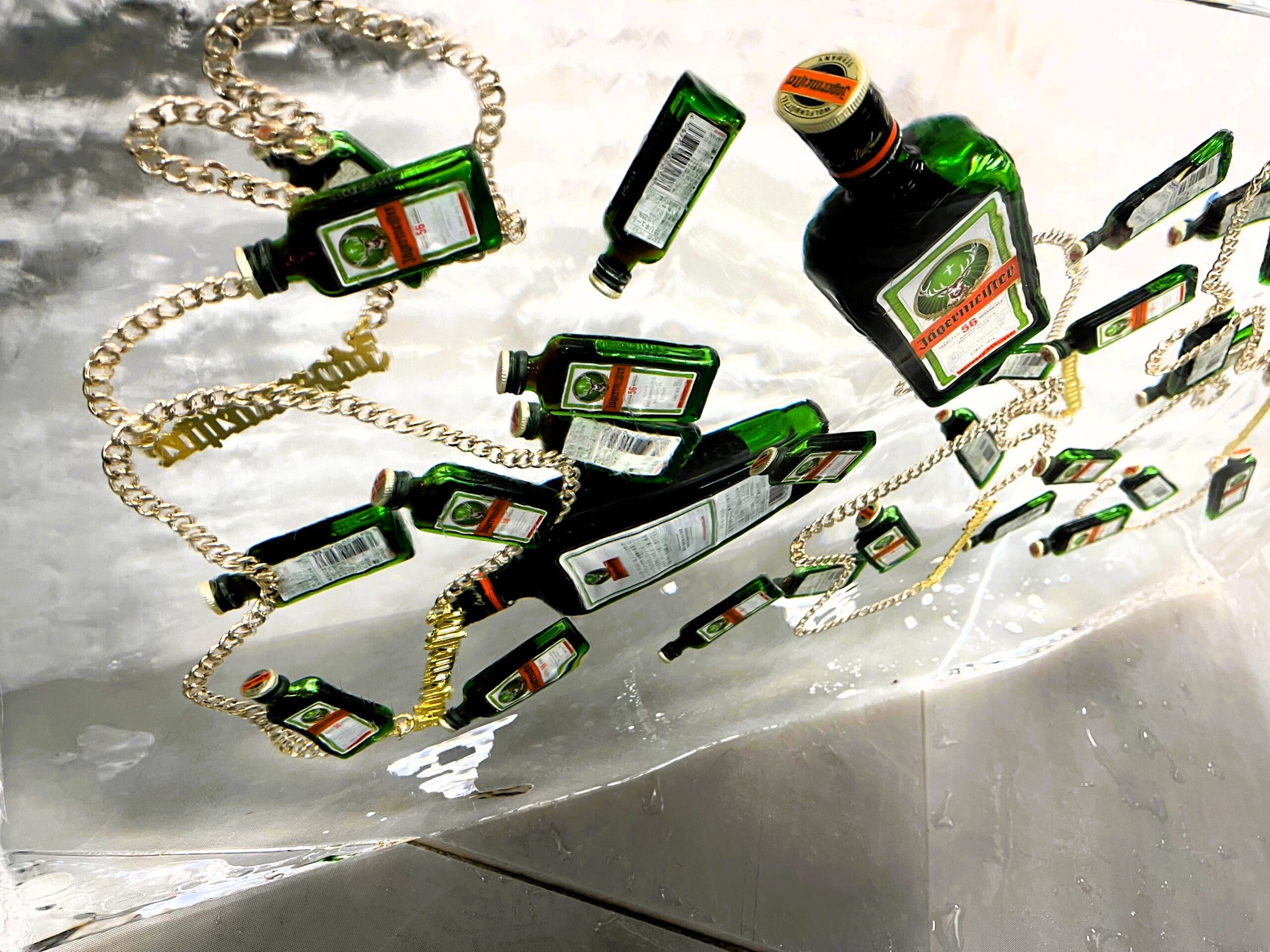 8種類の木製3D透かし彫りオーナメント(ハンドメイド品) を氷に閉じ込めた。
